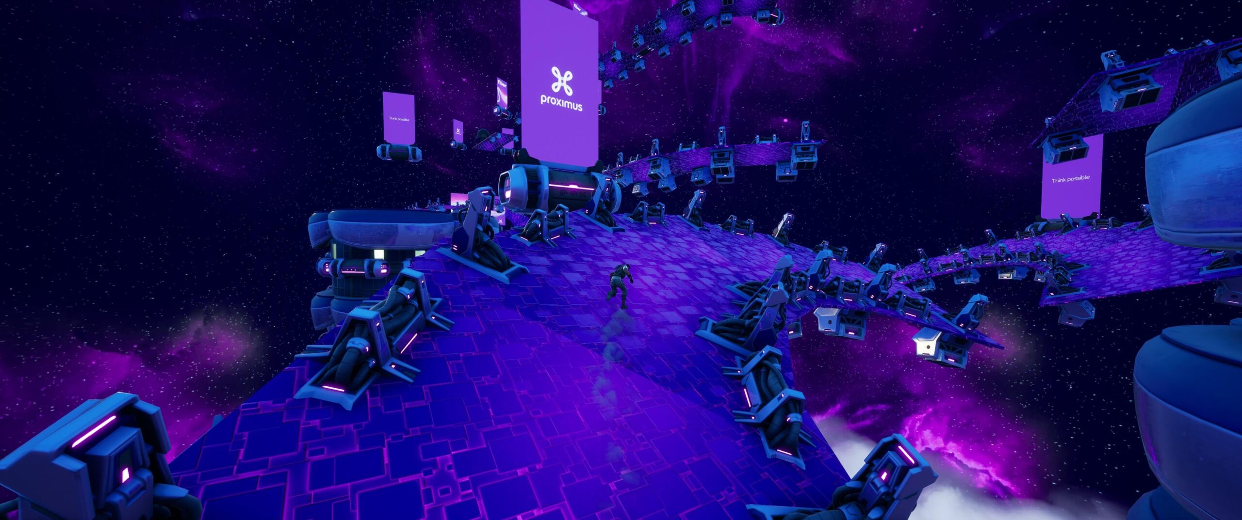 Ceux-ci sont en effet toujours à la recherche de l’expérience de jeu ultime et seraient donc particulièrement bien servis par la connexion Internet la plus rapide et la plus stable du pays, que Proximus offrait en premier, avec des vitesses de téléchargement allant jusqu’à 8,5 Gbps (voire plus bientôt). Afin d’attirer l’attention de la cible populaire de ces ‘early adopters’, il a été décidé d’accéder au monde virtuel où ils jouent tous les jours. C’est ainsi que, sous l’égide de la marque Proximus, un Fiber Hyper Run a été créé dans le jeu populaire et accessible Fortnite, avec dix niveaux uniques.