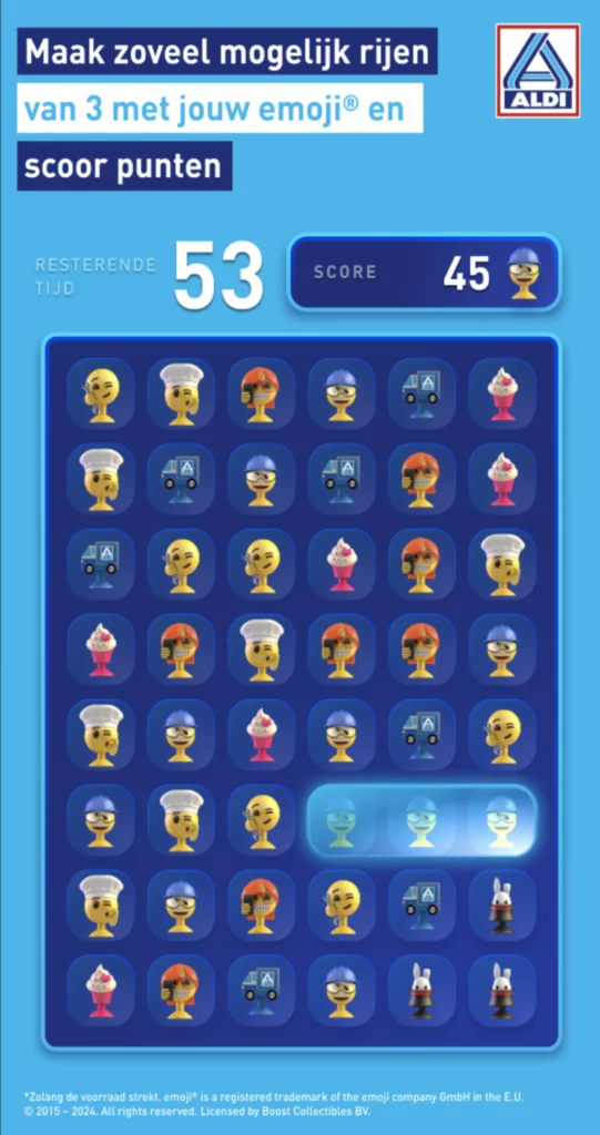 ALDI aimed to promote its limited-edition emoji collectibles to young families during the back-to-school season. The core objectives were to reinforce brand visibility and keep ALDI top-of-mind for both parents and children. Critically, ALDI sought to go beyond traditional in-store and media visibility by engaging families in their daily mobile gaming habits. The goal was to transform their emoji universe into a memorable, playable experience.